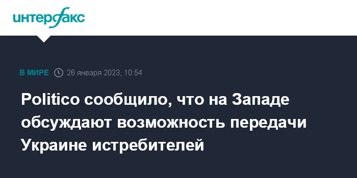 Москва. 26 января. INTERFAX.RU - Представители западных стран ведут внутренние обсуждения по поводу возможности передачи истребителей Украине, сообщает издание Politico со ссылкой на источники.