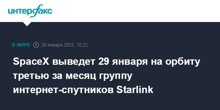 SpaceX выведет 29 января на орбиту третью за месяц группу интернет-спутников Starlink