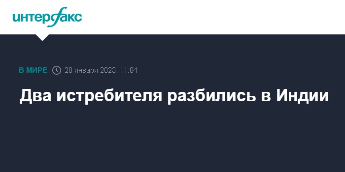 Москва. 28 января. INTERFAX.RU - Два военных самолета потерпели крушение в Индии, сообщает The Times of India. Речь идет об истребителях Су-30 и Mirage 2000.