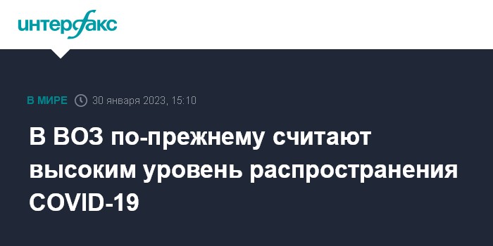 Москва. 30 января. INTERFAX.RU - Коронавирус COVID-19 продолжает представлять глобальный риск, уровень его распространения все еще очень высок, сообщили в понедельник в Секретариате ВОЗ.