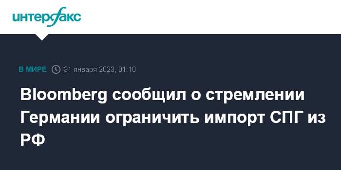 Москва. 31 января. INTERFAX.RU - Власти ФРГ намерены принять меры по ограничению импорта российского сжиженного природного газа (СПГ), сообщает Bloomberg со ссылкой на правительственный документ.