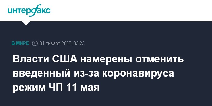 "Чрезвычайное положение в стране из-за COVID-19 и чрезвычайное положение в области общественного здравоохранения были объявлены (...) в 2020 году. Срок их действия истекает 1 марта и 11 апреля соответственно. В настоящее время план администрации состоит в том, чтобы продлить чрезвычайные объявления до 11 мая, а затем прекратить оба чрезвычайных положения в эту дату", - говорится в заявлении Белого дома.