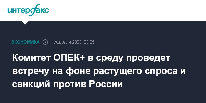 Источники "Интерфакса", знакомые с ситуацией, говорят, что пока не ждут никаких изменений в квотах. Встреча проходит на фоне выхода Китая из карантина, что увеличивает ожидания по росту спроса на нефть, и также влияния санкций стран G7 на российскую нефть и нефтепродукты - 5 декабря 2022 года вступило в силу эмбарго на импорт российской нефти в ЕС, 5 февраля 2023 года вступает в действие эмбарго на импорт нефтепродуктов. Кроме того, в аналогичные сроки вступает в силу запрет для компаний стран G7 на морские перевозки российских нефти и нефтепродуктов, если цена нефти выше $60 за баррель (для нефтепродуктов потолок пока не установлен).