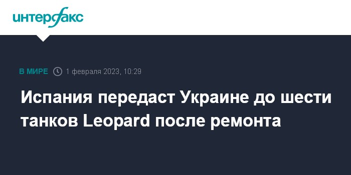 Москва. 1 февраля. INTERFAX.RU - Первая отгрузка танков из Испании будет состоять из четырех-шести отремонтированных машин Leopard 2A4, пишет El Pais со ссылкой на правительственные источники.