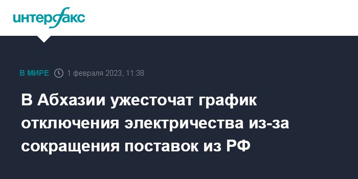 Москва. 1 февраля. INTERFAX.RU - В Абхазии с 1 февраля ужесточают график отключений электричества, сообщило "Черноморэнерго". Компания объяснила эту вынужденную меру тем, что объем электроэнергии, поставляемой по перетоку из России, в феврале будет меньше, чем в январе.