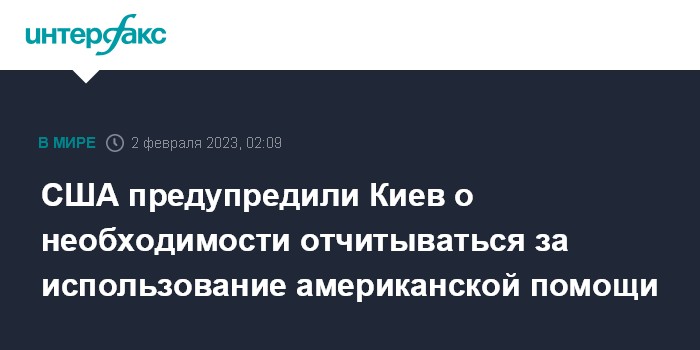 Москва. 2 февраля. INTERFAX.RU - Пентагон, Госдеп и агентство США по международному развитию (USAID) предупредили Украину о необходимости отчитаться за отправленную ей помощь, сообщает газета Washington Post.