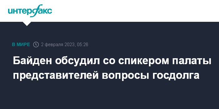 Москва. 2 февраля. INTERFAX.RU - Президент США и спикер палаты представителей американского конгресса Кевин Маккарти обсудили вопросы, касающиеся потолка государственного долга, сообщил Белый дом.