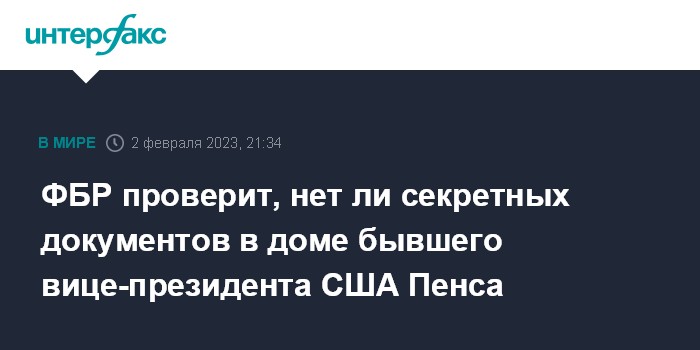 Москва. 2 февраля. INTERFAX.RU - Сотрудники ФБР, как ожидается, проведут обыски в доме бывшего вице-президента США Майка Пенса в ближайшие дни, сообщает издание The Wall Street Journal со ссылкой на источники.