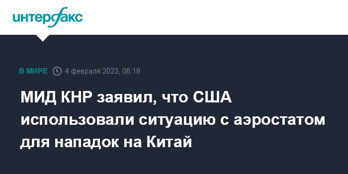 Москва. 4 февраля. INTERFAX.RU - Некоторые американские представители использовали неожиданно возникшую ситуацию с китайским аэростатом, оказавшимся над американской территорией, для нападок на Китай, заявил в субботу МИД КНР.