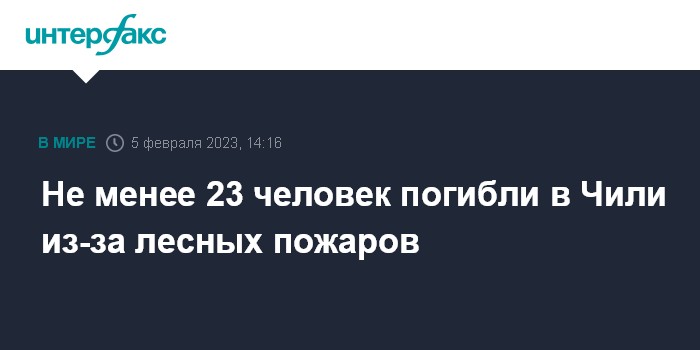 Москва. 5 февраля. INTERFAX.RU - Как минимум 23 человека стали жертвами лесных пожаров в Чили, передает The Guardian.