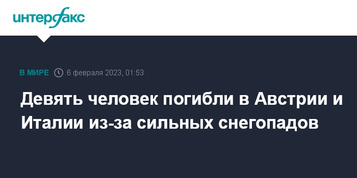 Москва. 6 февраля. INTERFAX.RU - Девять человек погибли в результате схода лавин в Австрии и Италии в минувшие выходные, сообщает Associated Press со ссылкой на полицию.