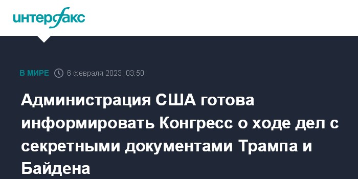 Администрация США готова информировать Конгресс о ходе дел с секретными документами Трампа и Байдена