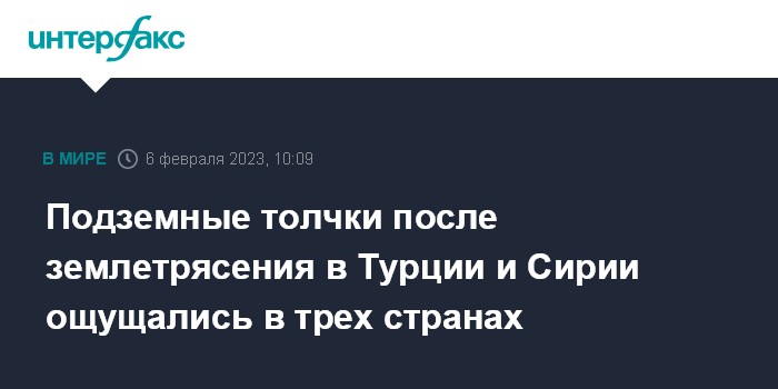 Подземные толчки после землетрясения в Турции и Сирии ощущались в трех странах