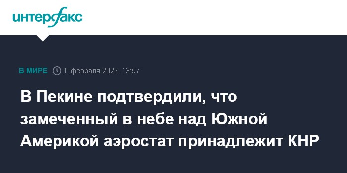 Москва. 6 февраля. INTERFAX.RU - Замеченный в небе над Латинской Америкой аэростат действительно принадлежит КНР, это сбившееся с курса гражданское судно, сообщает Global Times.