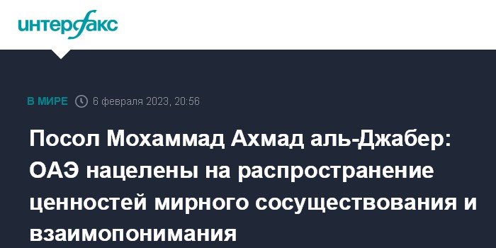 Посол Мохаммад Ахмад аль-Джабер: ОАЭ нацелены на распространение ценностей мирного сосуществования и взаимопонимания