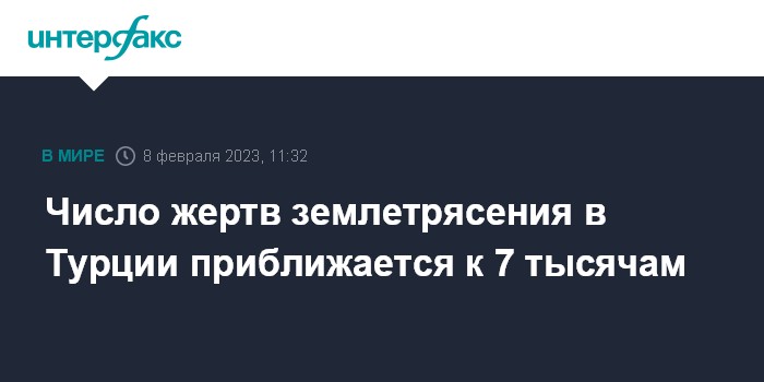 Число жертв землетрясения в Турции приближается к 7 тысячам