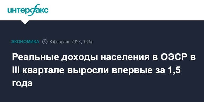 Москва. 8 февраля. INTERFAX.RU - В III квартале 2022 года реальные доходы населения стран Организации экономического сотрудничества и развития (ОЭСР) увеличились впервые за шесть кварталов - с января-марта 2021 года.