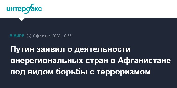 Путин заявил о деятельности внерегиональных стран в Афганистане под видом борьбы с терроризмом
