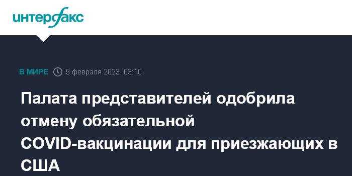 Москва. 9 февраля. INTERFAX.RU - Законопроект, отменяющий требование об обязательной вакцинации от COVID-19 въезжающих в страну иностранцев, был принят Палатой представителей США в среду.