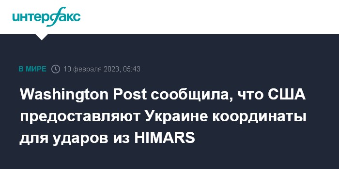 Москва. 10 февраля. INTERFAX.RU - США и их союзники предоставляют Украине координаты для подавляющего большинства ударов с использованием передовых ракетных систем, сообщает Washington Post ссылкой на осведомленные источники.