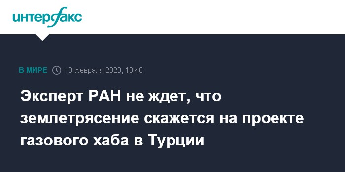"Что касается турецкого хаба, то все трубы идут по Черному морю, а от места землетрясения это очень далеко. Там, где проходят эти трубы, ощутимость землетрясения три балла. Это фактически ничего. А нефте- и газопроводы - они до семи баллов рассчитаны по своему проекту, поэтому никакой опасности нет", - заключил ученый.