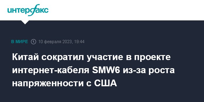Китай сократил участие в проекте интернет-кабеля SMW6 из-за роста напряженности с США