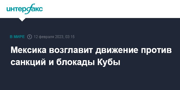 Москва. 12 февраля. INTERFAX.RU - Президент Мексики Андрес Мануэль Лопес Обрадор объявил, что его страна возглавит движение против санкций и блокады, введенных в отношении Кубы Соединенными Штатами и их союзниками.