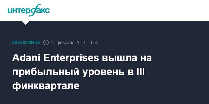 Москва. 14 февраля. INTERFAX.RU - В III финансовом квартале (октябрь-декабрь) Adani Enterprises Ltd., флагманская компания конгломерата индийского миллиардера Гаутама Адани, зафиксировала чистую прибыль и увеличила выручку в 1,4 раза.