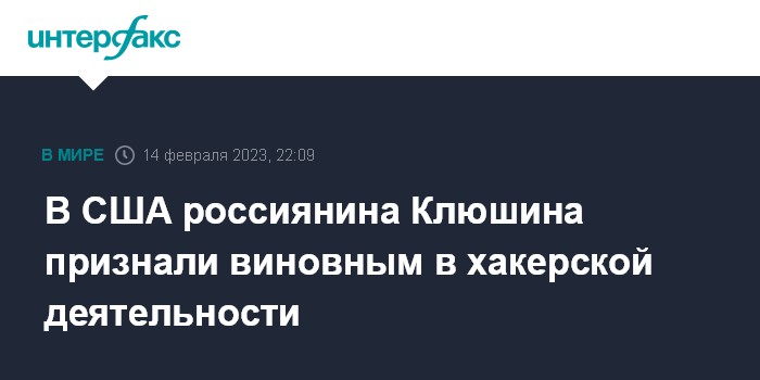 В США россиянина Клюшина признали виновным в хакерской деятельности