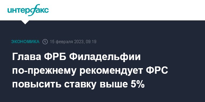 Глава ФРБ Филадельфии по-прежнему рекомендует ФРС повысить ставку выше 5%