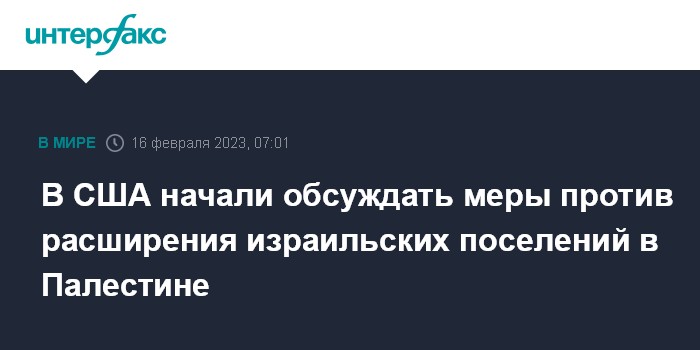 Москва. 16 февраля. INTERFAX.RU - Администрация президента США Джо Байдена обсуждает дополнительные шаги в ответ на последние заявления Израиля о расширении своих поселений на Западном берегу, передает Axios, ссылаясь на американских чиновников.