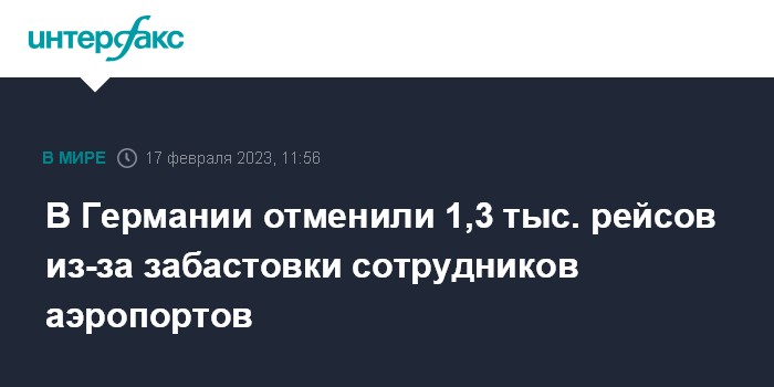 Москва. 17 февраля. INTERFAX.RU - Забастовка сотрудников аэропортов в Мюнхене и Франкфурте-на-Майне в Германии привела в пятницу к отмене 1,3 тыс. рейсов, сообщает Bloomberg.