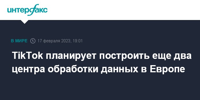 Москва. 17 февраля. INTERFAX.RU - Сервис обмена короткими видео TikTok, который принадлежит китайской компании ByteDance Ltd., планирует строительство двух центров обработки данных (ЦОД) в Европе для решения проблем безопасности, сообщает The Wall Street Journal.