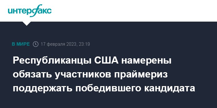 Агентство сообщает, что обязательство лояльности планируют утвердить на встрече Национального комитета Республиканской партии, которая пройдет на следующей неделе. После этого республиканцы, которые планируют бороться за право быть кандидатом на пост президента от партии, не смогут принять участие в дебатах, если не подпишут обязательство.