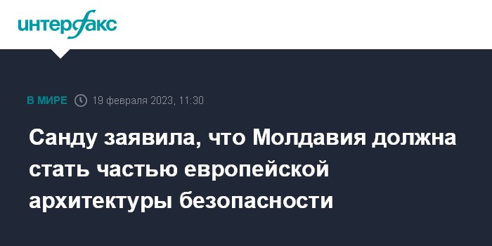 Москва. 19 февраля. INTERFAX.RU - Граждане Молдавии не поддерживают отказ от конституционного нейтралитета страны, заявила в воскресенье президент республики Майя Санду.