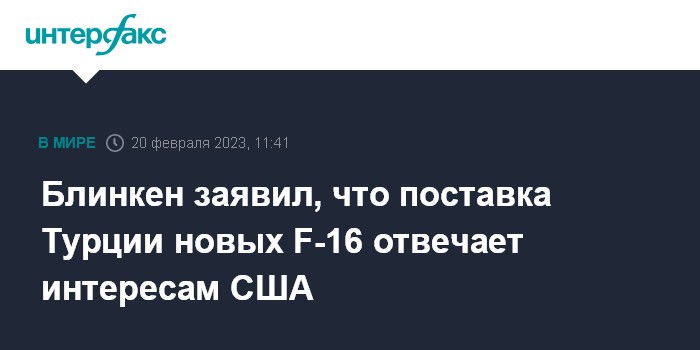 Глава МИД Турции Мевлют Чавушоглу на встрече с Блинкеном в свою очередь отметил, что "завершение оформления сделки по F-16 выгодно обеим сторонам".