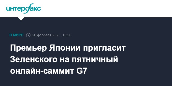 Москва. 20 февраля. INTERFAX.RU - Премьер-министр Японии Фумио Кисида заявил в понедельник, что пригласит президента Украины Владимира Зеленского на саммит "большой семерки", который пройдет 24 февраля, сообщило информационное агентство Киодо.