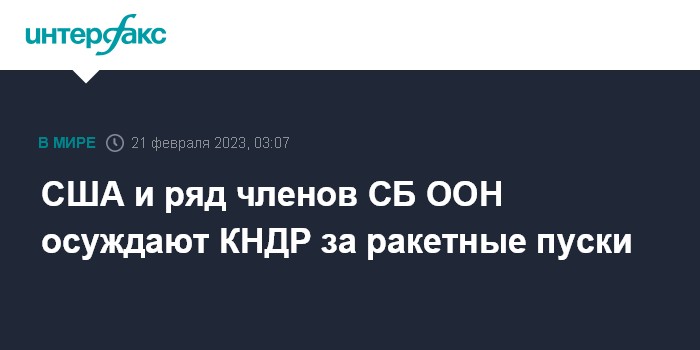Москва. 21 февраля. INTERFAX.RU - Соединенные Штаты и ряд стран Совета Безопасности ООН осуждают КНДР за проведение запусков ракет и призывают Пхеньян к диалогу, заявила постпред США при ООН Линда Томас-Гринфилд на заседании Совбеза ООН.