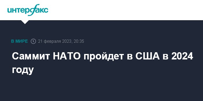 Москва. 21 февраля. INTERFAX.RU - США примут саммит НАТО в 2024 году, заявил во вторник президент США Джо Байден.