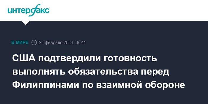 "Он (Остин - ИФ) подтвердил, что в случае вооруженного нападения на филиппинские вооруженные силы, самолеты и корабли, в том числе принадлежащие их береговой охране, в любом районе Южно-Китайского моря США выполнят свои обязательства в соответствии со статьей IV американо-филиппинского договора о взаимной обороне 1951 года", - отмечается в релизе.