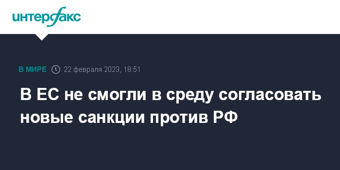 Москва. 22 февраля. INTERFAX.RU - Постпреды стран Евросоюза в среду не достигли договоренностей по новому, десятому пакету санкций в отношении России, сообщают европейские СМИ.