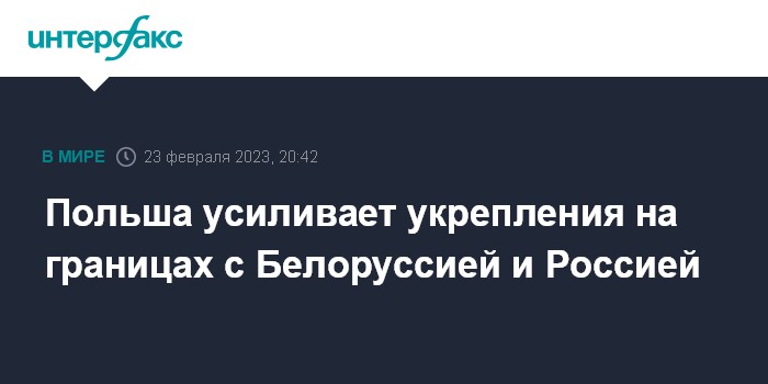 Москва. 23 февраля. INTERFAX.RU - Министр обороны Польши Мариуш Блащак сообщил об усилении фортификационных сооружений на границах с Белоруссией и Россией.