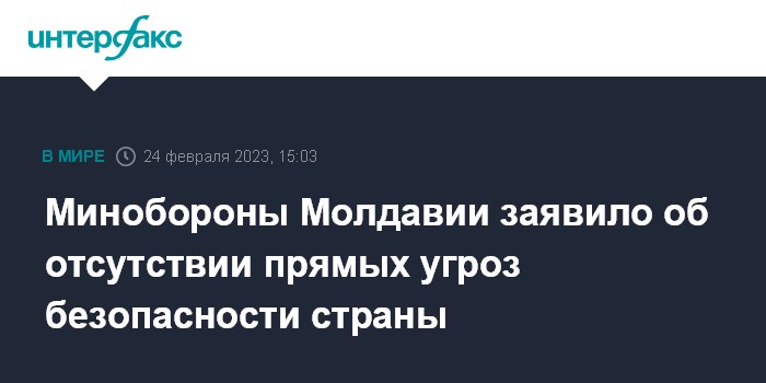 Москва. 24 февраля. INTERFAX.RU - Прямых угроз безопасности Молдавии нет, прокомментировало Минобороны республики сообщения Минобороны России о возможных провокациях со стороны Украины в Приднестровском регионе.