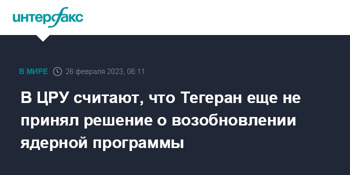 Москва. 26 февраля. INTERFAX.RU - Директор Центрального разведывательного управления (ЦРУ) США Уильям Бернс считает, что в Тегеране пока не принято решение о возобновлении программы, направленной на производство ядерного оружия.