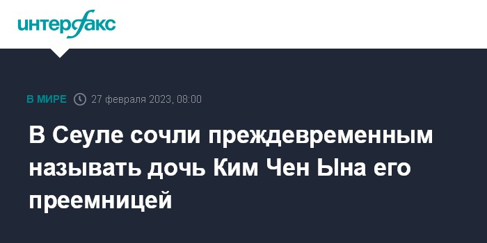 Москва. 27 февраля. INTERFAX.RU - Министр по делам объединения двух Корей Квон Ен Се считает, что пока слишком рано говорить о том, можно ли считать дочь северокорейского лидера Ким Чен Ына его наследницей.