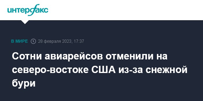 Москва. 28 февраля. INTERFAX.RU - На северо-востоке США отменили более 400 авиарейсов из-за снежной бури, сообщают американские СМИ.
