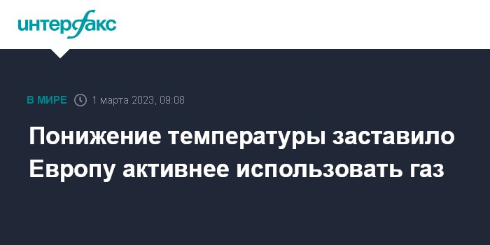 Москва. 1 марта. INTERFAX.RU - С начала недели в Европе немного похолодало, и если дневные температуры снизились незначительно, по ночам отмечаются заморозки. Это заставляет отрасль активнее расходовать газ и отбирать его из подземных хранилищ.
