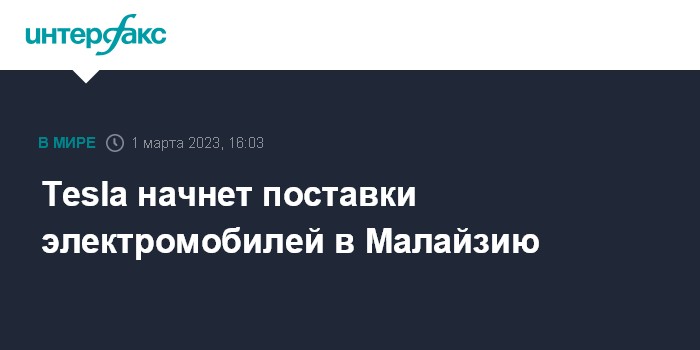 Москва. 1 марта. INTERFAX.RU - Правительство Малайзии одобрило заявку американской Tesla Inc. на поставку в страну электромобилей компании.