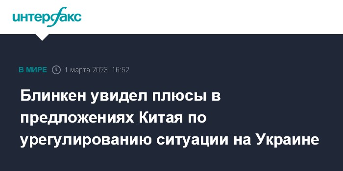 Москва. 1 марта. INTERFAX.RU - В опубликованном заявлении МИД Китая по урегулированию ситуации на Украине есть положительные элементы, заявил госсекретарь США Энтони Блинкен в среду во время визита в Узбекистан.