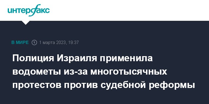 Москва. 1 марта. INTERFAX.RU - В Иерусалиме, Тель-Авиве и других израильских городах тысячи протестующих против запланированной правительством юридической реформы вновь вышли на улицы, полиция разгоняла участников акции водометами и светошумовыми гранатами, пишут израильские СМИ.